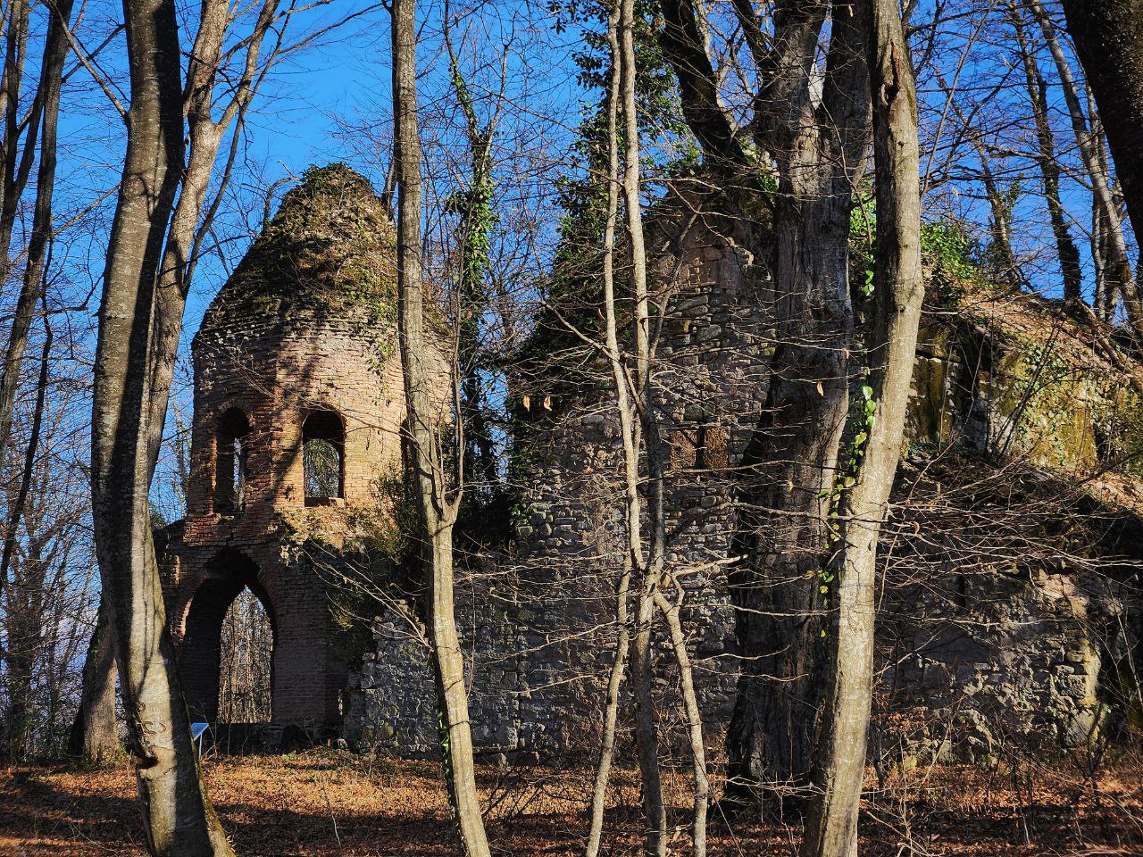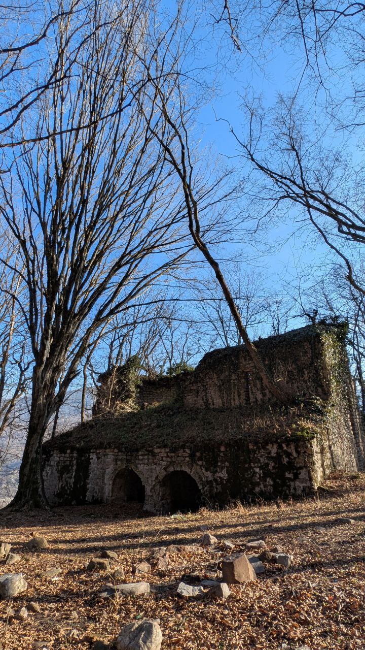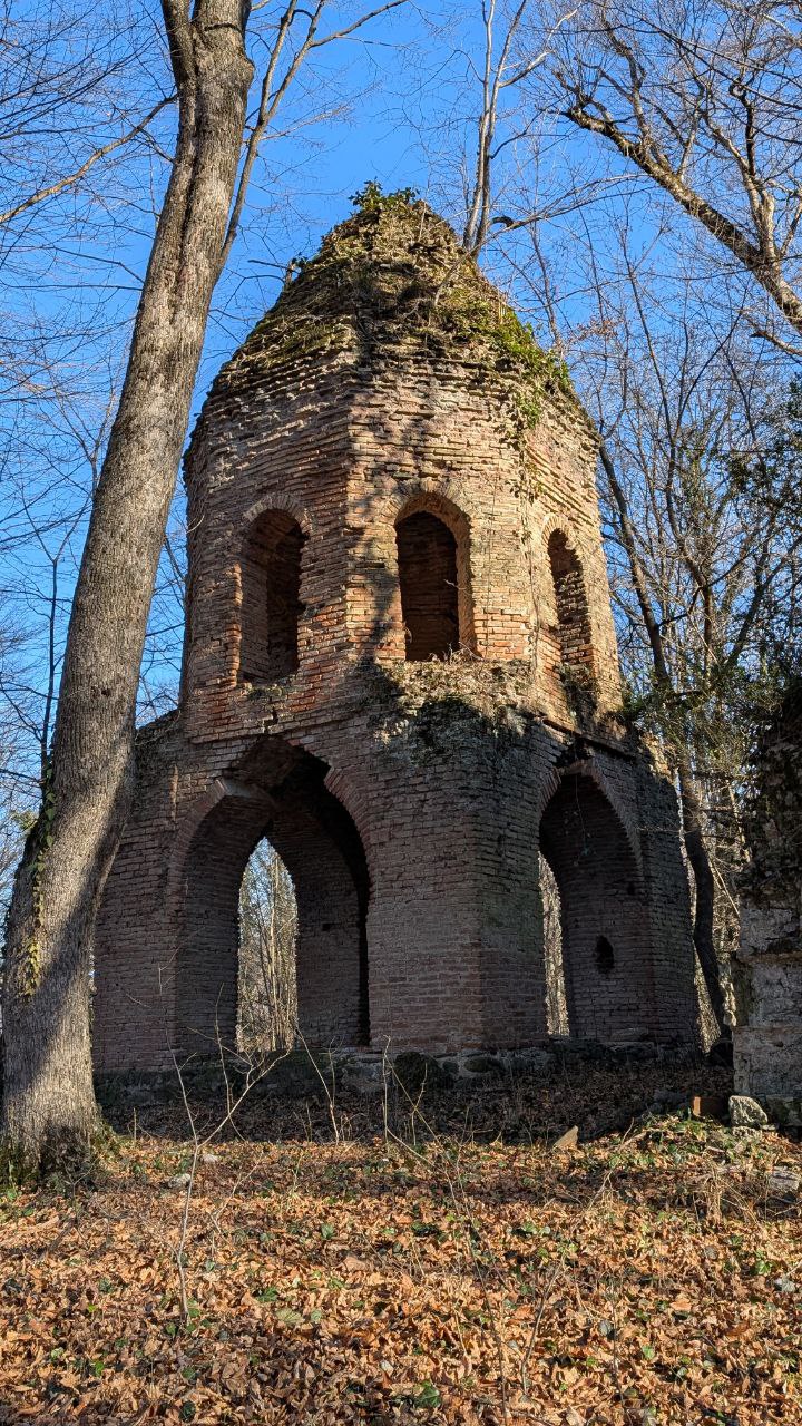 Mysterious ruins surrounded by trees. Take a break here and have a light snack.