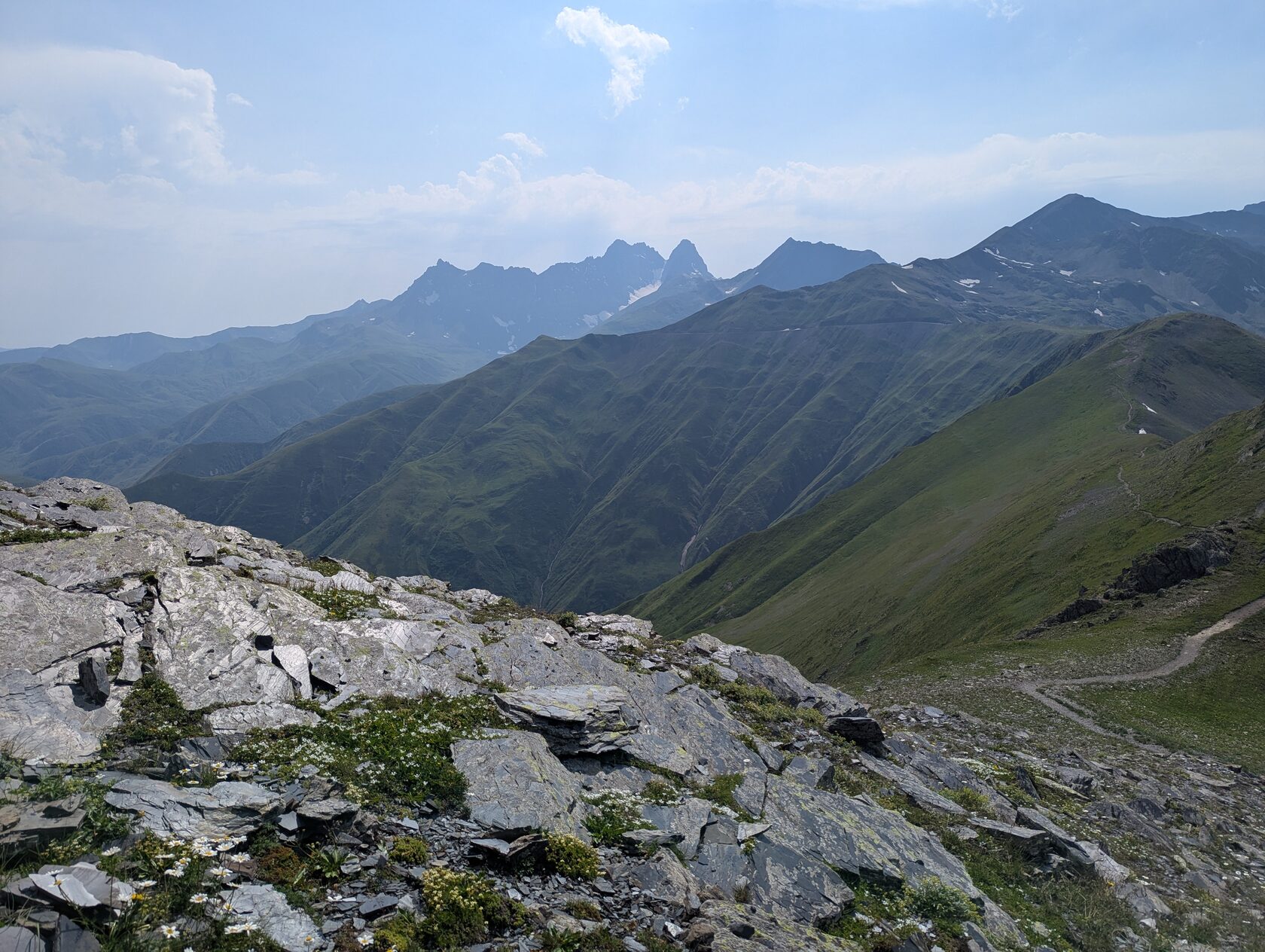 Один из самых красивых и уединённых маршрутов Хевсурети. Всего 9 км, но за этот день вы увидите такие панорамы, ради которых сто́ит идти. Подходит тем, кто уже был в популярных локациях и хочет