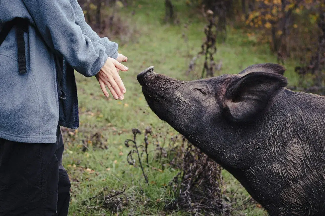 Сначала мы приезжаем в небольшой поселок, там обычно гостей встречают добродушные деревенские собаки. Они могут пройти с нами за компанию весь маршрут.