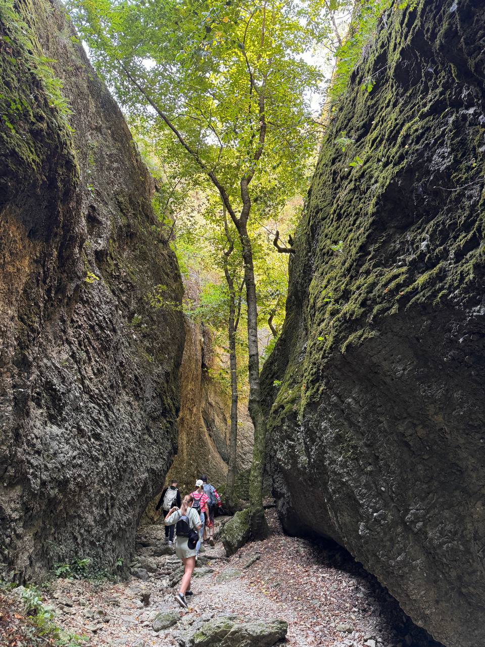 Дорога начинается с небольшого подъема к первой видовой точке, с которой открываются захватывающие панорамы биртвиских каньонов. Это настоящая природная достопримечательность Грузии. Когда-то давно здесь извергались вулканы, а потом вода и ветер превратили застывшую лаву в глубокие узкие ущелья с причудливыми зубьями скал. Реки промыли множество каньонов.