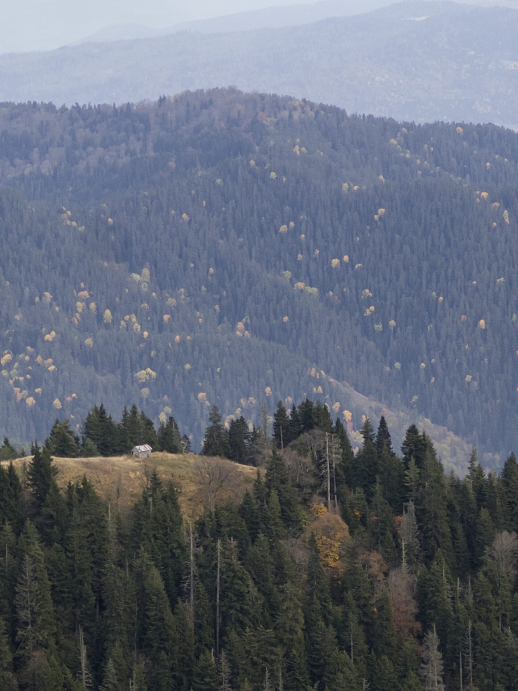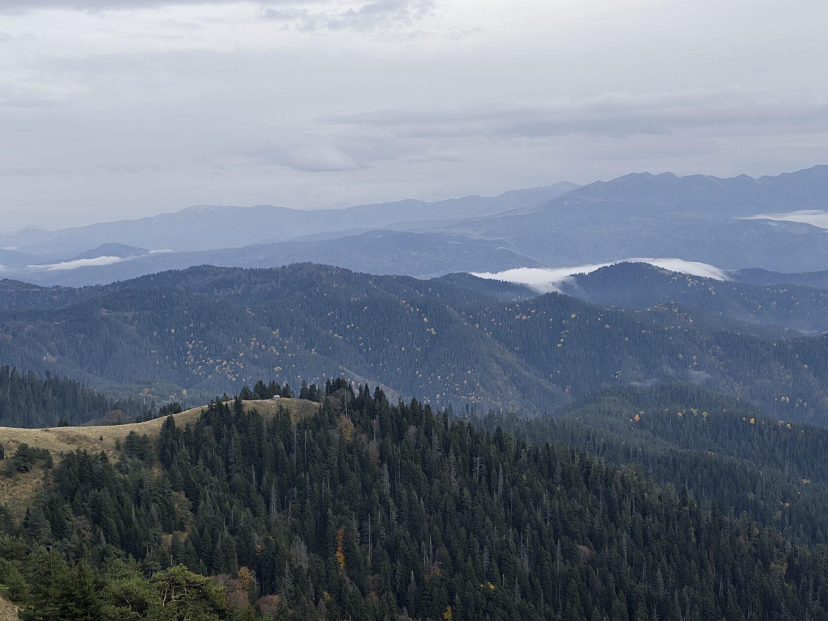 Тропа начинается у посёлка Квабисхеви, где влажный воздух напоён запахом земли, мха и листвы. Первые километры — спокойный подъём по влажному лесу.